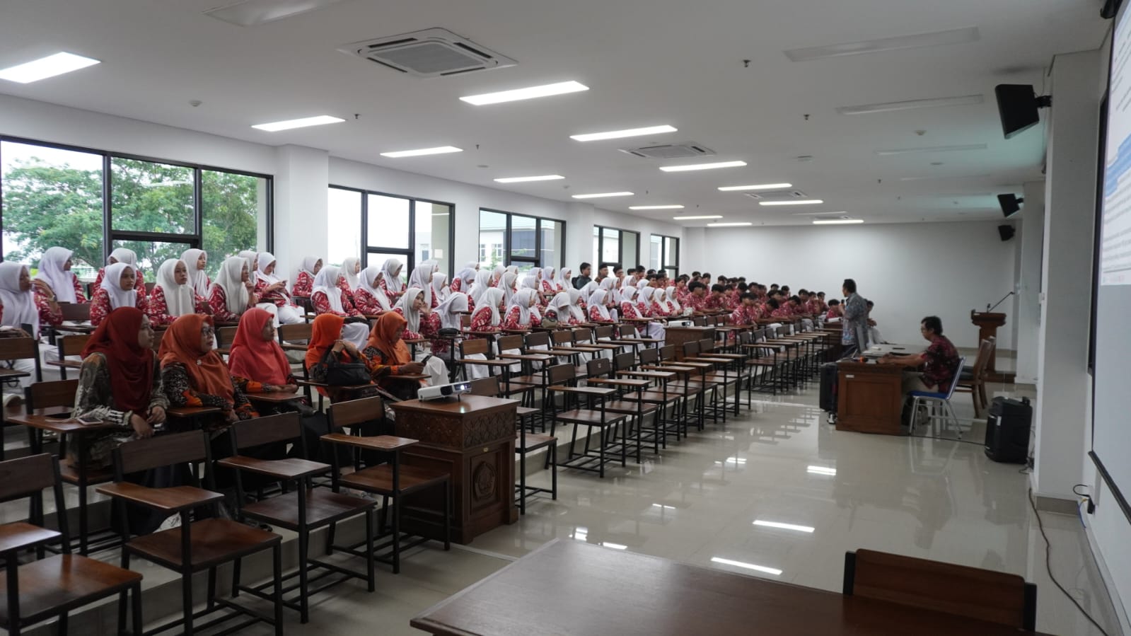 Sementara itu kelompok 2 yang terdiri atas murid-murid kelas XII E, F, dan G diterima kehadirannya di Fakultas Perernakan dan Pertanian.