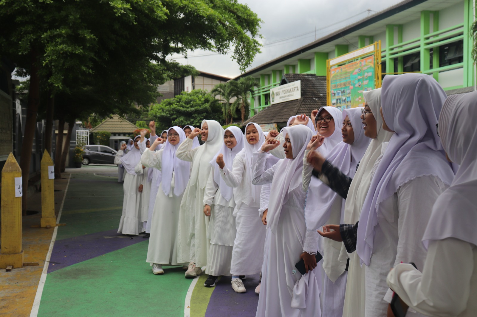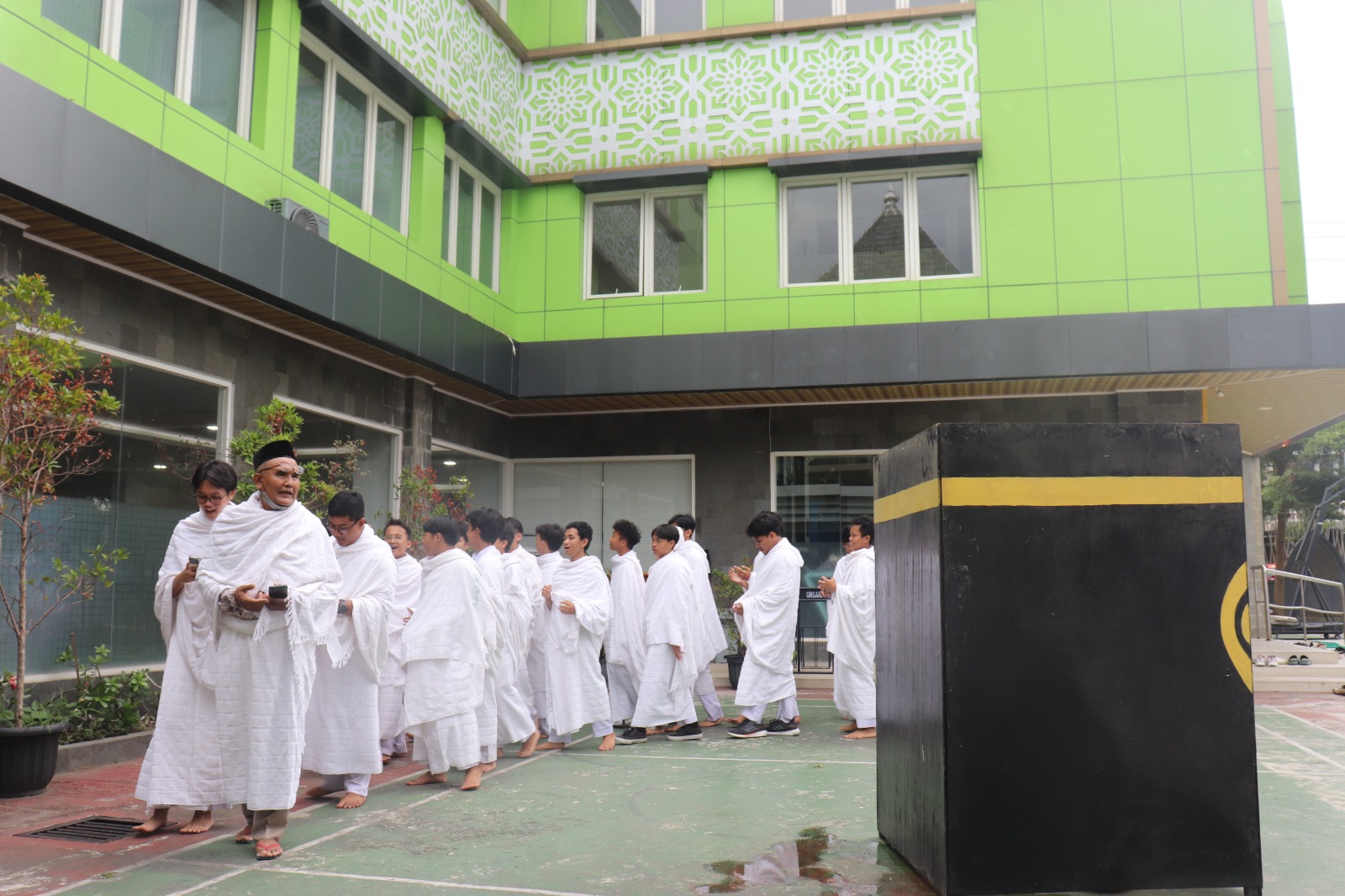 Yogyakarta (MAN 1 Yogya) -- Suara talbiyah bersahut-sahutan terdengar bergema di MAN 1 Yogyakarta, dalam praktik pra manasik haji kelas X MAN 1 Yogyakarta, Jumat (24/11/2023) siang. Kegiatan yang berlangsung di aula lantai 2 dan lapangan utama MAN 1 Yogyakarta ini bertujuan untuk memberikan teori dan gambaran secara umum tentang pelaksanaan haji sebelum praktik manasik yang direncanakan pada Kamis (14/12/2023) nantinya.