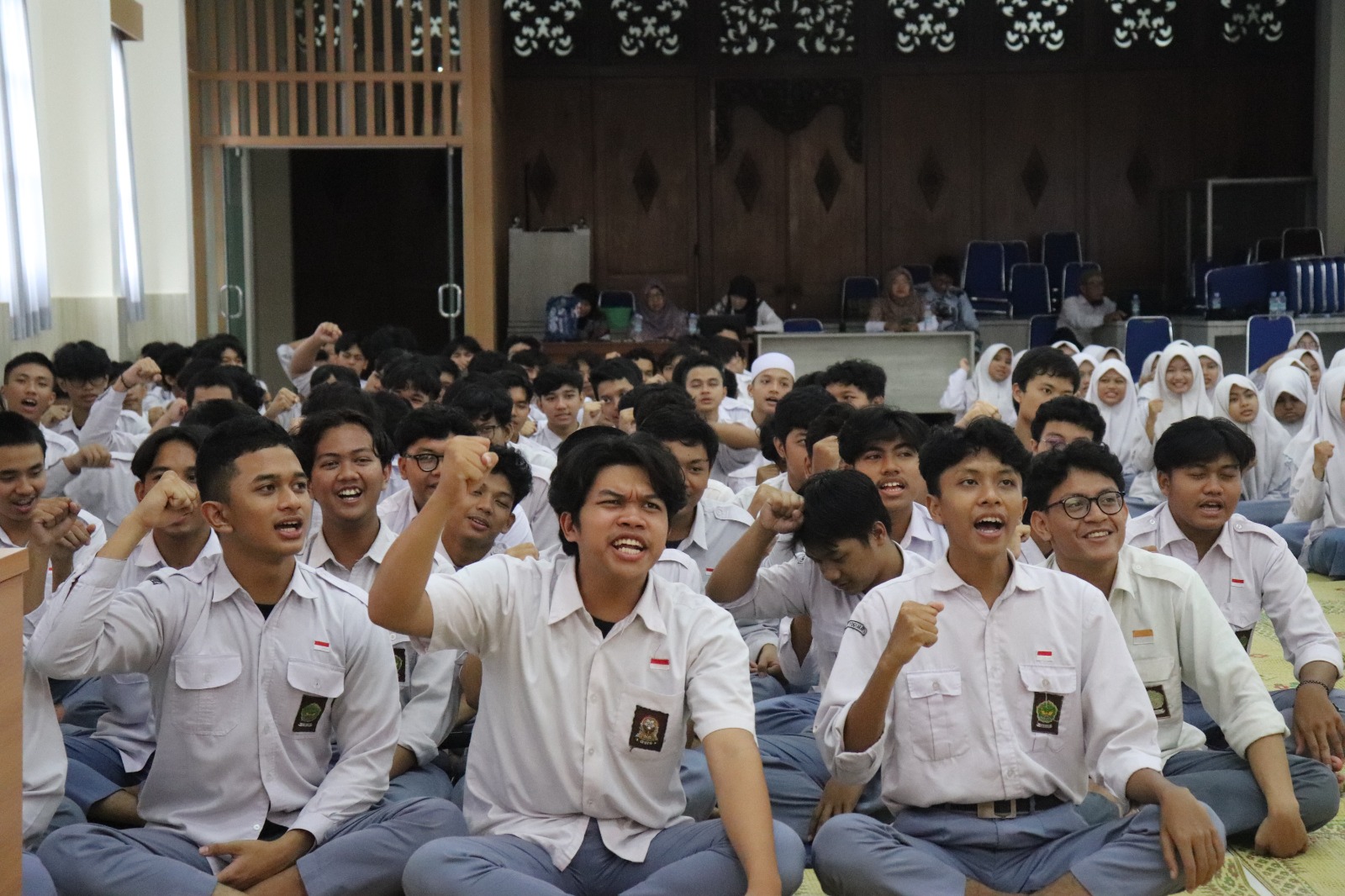 “Terus yakin dengan diri sendiri dan pilihan masing-masing,” ujar Naqoy, Sang Motivator, memberi semangat kepada peserta didik kelas 12 MAN 1 Yogyakarta. (nay/ar)