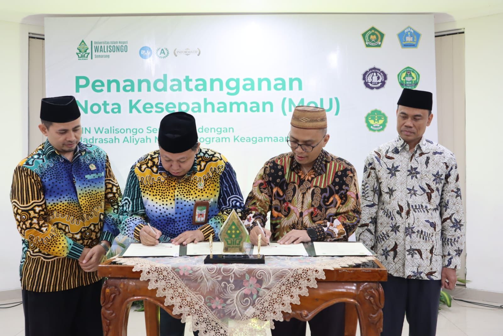 UIN Walisongo, Semarang (MAN 1 YK) -- Jalin kerja sama dengan seluruh Madrasah Aliyah Negeri Program Keagamaan (MAN PK) di seluruh Indonesia, Universitas Islam Negeri (UIN) Walisongo siap berikan beasiswa untuk siswa-siswi terbaik MAN PK. Hal ini diresmikan dengan penandatanganan kerja sama yang dilaksanakan pada Kamis (12/10/23) di Gedung Planetarium UIN Walisongo.
