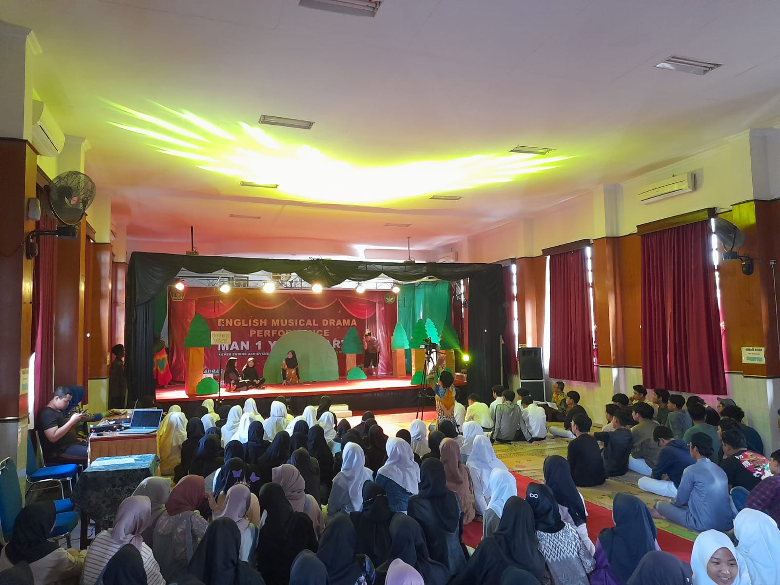 Seperti English Musical Drama Performance (Pertunjukan Drama Musikal Bahasa Inggris) yang diperankan para siswa kelas 12 MAN 1 Yogyakarta ini, Kamis (23/02/2023), di Aula lantai 2