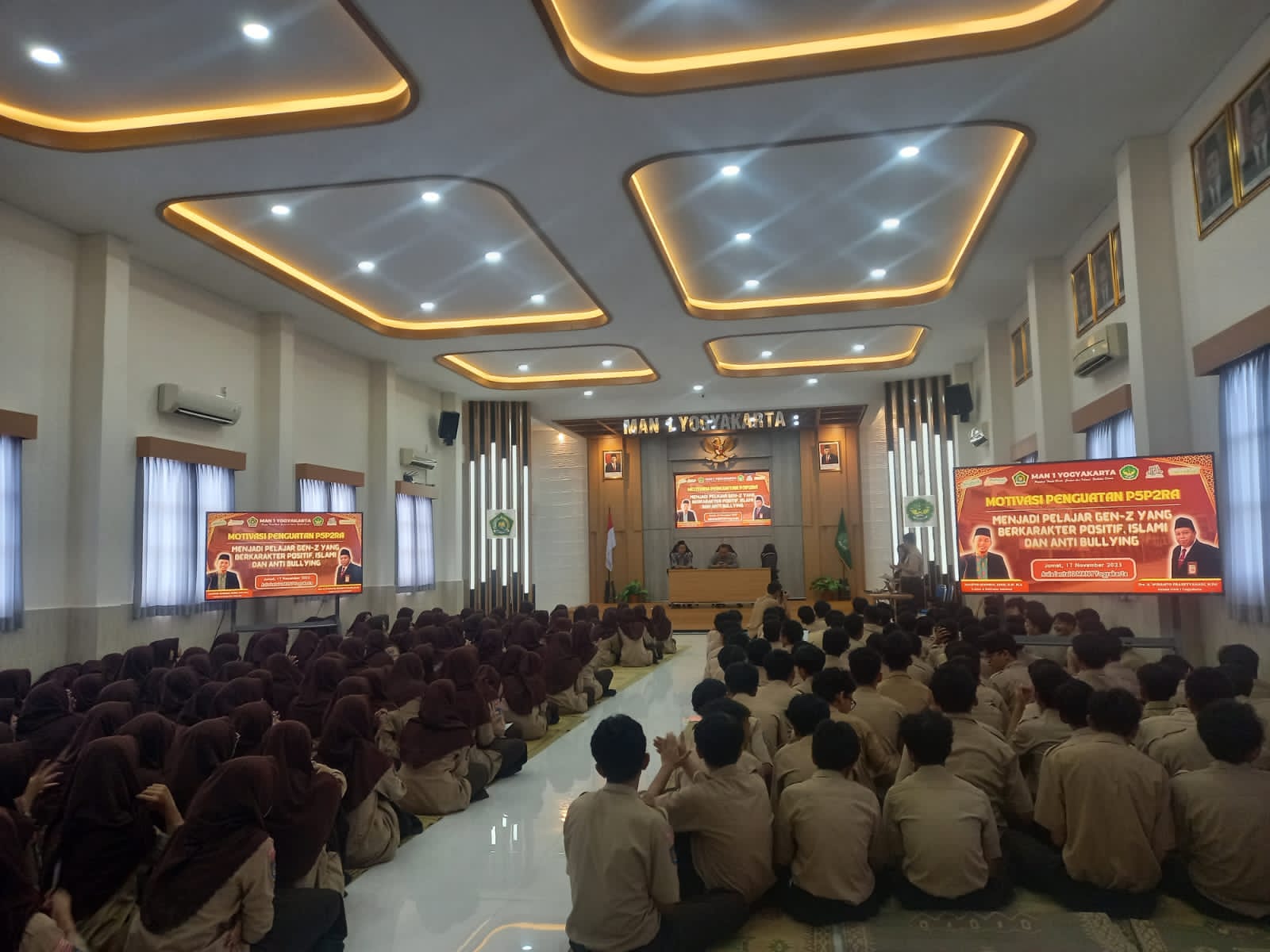 Yogyakarta (MAN 1 YK) -- Sebanyak 289 siswa Kelas 10 MAN 1 Yogyakarta mengikuti kegiatan motivasi Penguatan Profil Pelajar Pancasila dan Profil Pelajar Rahmatan Lil Alamin di aula lantai dua MAN 1 Yogyakarta, Jumat (17/11/23). Kegiatan motivasi kali ini mengusung tema “Menjadi Pelajar Generasi Z yang Berkarakter Positif, Islami, dan Anti Bullying”.