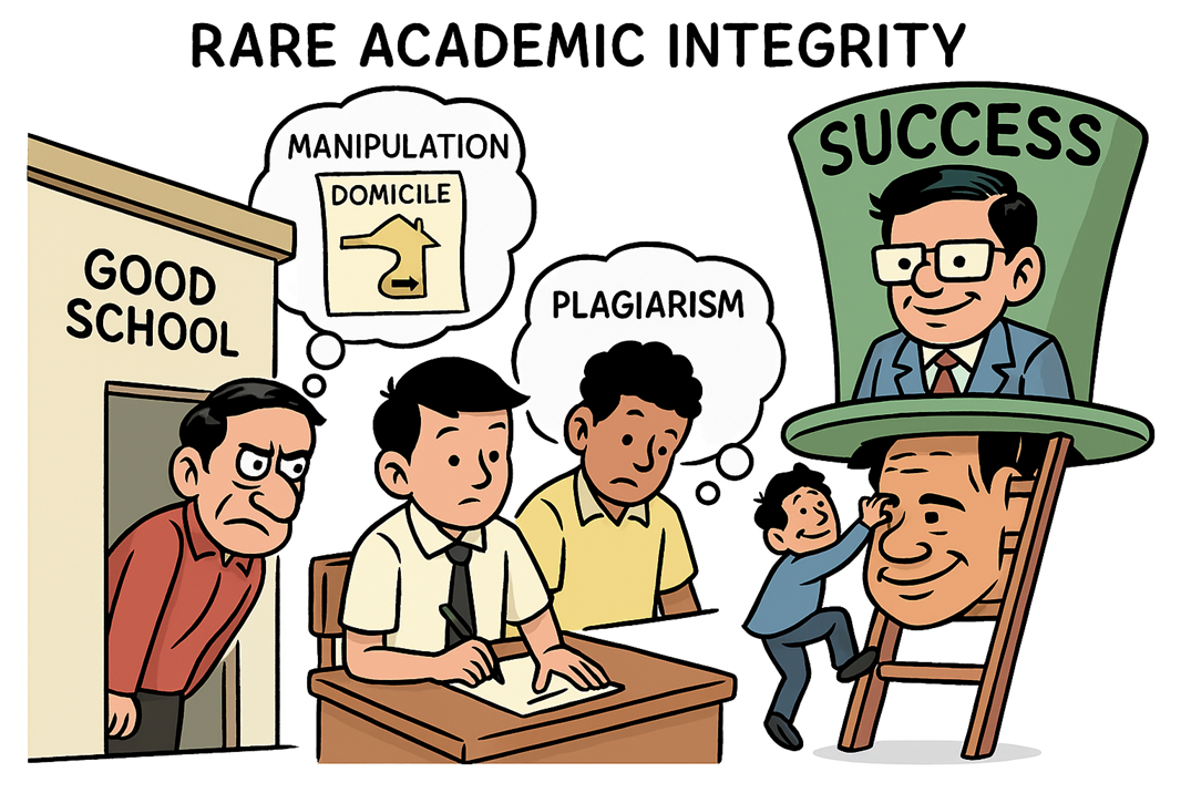 Sungguh memprihatinkan hasil penelitian Vit Machacek dan Martin Srholec, dua peneliti asal Republik Ceko, yang menyebutkan Indonesia menempati urutan kedua negeri yang tidak jujur dalam akademik. Temuan ini tidak sekadar mencoreng nama Indonesia, namun menggambarkan krisis integritas dunia pendidikan Indonesia yang semakin mengkhawatirkan. Peringkat tersebut tidak sekadar angka-angka yang akan hilang dengan sendirinya seiring waktu, melainkan cerminan nilai moral bangsa yang buruk yang tidak mudah untuk dihilangkan.