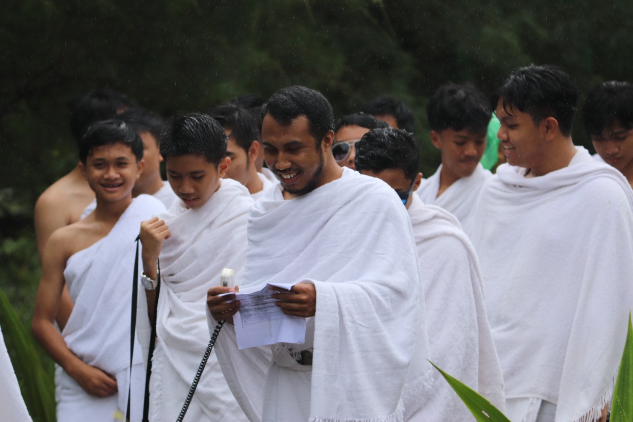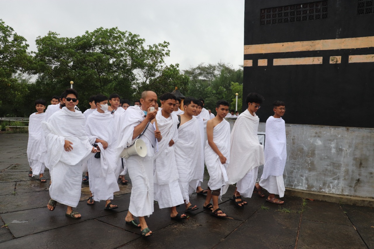 Yogyakarta (MAN 1 YK) -- “Labbaik Allahumma labbaik, labbaika laa syariika laka labbaik, innal hamda wan ni’mata laka wal mulk laa syariika laka,” suara talbiyah bersahut-sahutan, dalam praktik manasik haji kelas X MAN 1 Yogyakarta, Selasa (18/10/2022) pagi, di Bumi Perkemahan Dewa Ruci atau Area Miniatur Manasik Haji Al-Barokah, Wonoroto, Gadingsari, Sanden, Bantul, DIY.