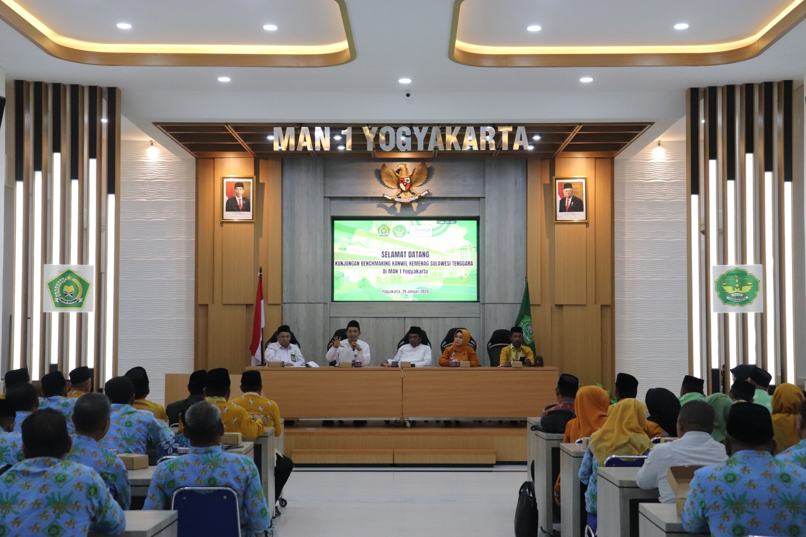 Yogyakarta (MAN 1 Yogya) – MAN 1 Yogyakarta menyambut kunjungan benchmarking dari Kantor Wilayah Kementerian Agama Sulawesi Tenggara pada Senin (29/1/2024). Bertempat di aula lantai 2 MAN 1 Yogyakarta, rombongan berkunjung bertujuan untuk berdiskusi dan tukar pikiran terkait kinerja dan program.