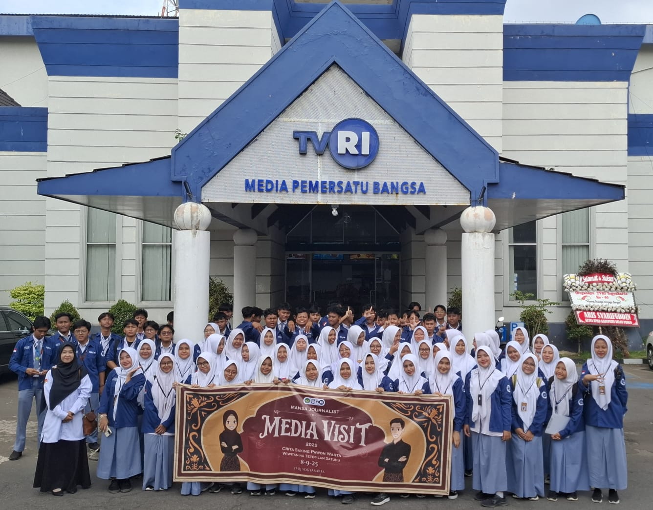 Sleman (MAN 1 Yogya) - Media Visit merupakan program kerja tahunan Mansa Journalist berupa kunjungan ke suatu instansi bidang jurnalistik atau pers guna meningkatkan wawasan dan pengalaman para anggota. Pada media visit kali ini, Mansa Journalist berkesempatan mengunjungi salah satu stasiun televisi di Yogyakarta sekaligus media penyiaran berita, TVRI Yogyakarta, yang bertempat di Jl. Magelang Km 4,5, Sleman. Media visit tahun ini dilaksanakan pada Senin (08/09/25) dan diikuti oleh seluruh anggota Mansa Journalist angkatan 12.