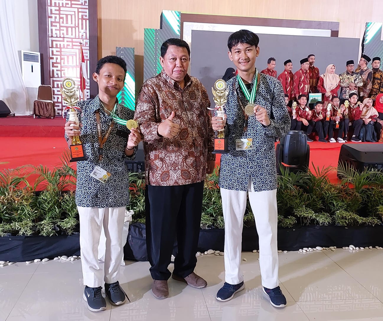Kendari (MAN 1 Yogya) -- Dua siswa dari MAN 1 Yogyakarta berhasil meraih medali emas dan perak dalam Kompetisi Sains Madrasah (KSM) Nasional, yang berlangsung di Kendari Sulawesi Tenggara, 3-7 September 2023. Puncak acara dan pengumuman dilaksanakan Rabu (6/9/2023) bertempat di Asrama Haji Provinsi Sultra. Dihadiri Sekjen Kemenag RI Prof. Dr. Nizar, M.Ag. sekaligus menyerahkan medali dan piala kepada para pemenang.