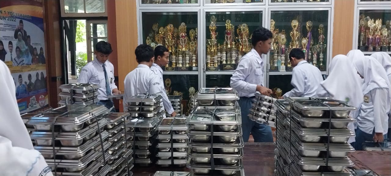Sebelum pukul 10 pagi, ompreng-ompreng Program Makan Bergizi Gratis (MBG) telah terkirim ke madrasah untuk sejumlah murid MAN 1 Yogyakarta yang hadir. Program MBG resmi dimulai hari ini, Senin, 22 September 2025, dan diperuntukkan khusus bagi para murid. Dalam pelaksanaannya, murid diminta membawa alat makan sendiri berupa sendok dan garpu, serta dianjurkan membawa tempat makan pribadi. Hal ini bertujuan agar makanan bisa disimpan jika tidak dikonsumsi saat itu, atau sebagai alternatif bagi yang khawatir akan kehigienisan tempat makan bersama. Ompreng (kotak makan) dapat diambil pukul 10.00 di Aula bawah oleh petugas tiap kelas, dengan kewajiban mengisi daftar pengambilan. Pengembalian ompreng dilakukan pukul 12.20 di tempat yang sama, sesuai jumlah awal yang diterima. Jumlah makanan yang diambil harus sesuai dengan total jumlah kelas, dan sisa makanan tidak boleh dibuang maupun dicuci, karena akan digunakan sebagai bahan evaluasi. Murid juga diberi kesempatan untuk menyampaikan kritik dan saran melalui note yang telah disediakan.