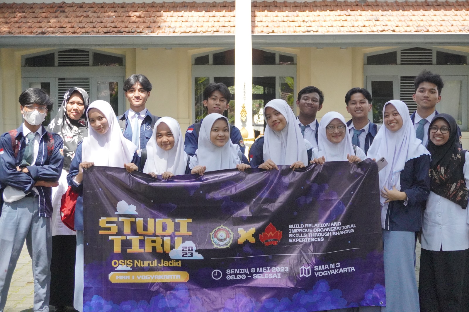 Yogyakarta (MAN 1 YK) -- Badan Pengurus Harian Organisasi Siswa Intra Sekolah (BPH OSIS) ‘Nurul Jadid’ MAN 1 Yogyakarta, lakukan kunjungan studi tiru ke OSIS SMA Negeri 3 Yogyakarta (Padmanaba), Senin (08/05/2023).