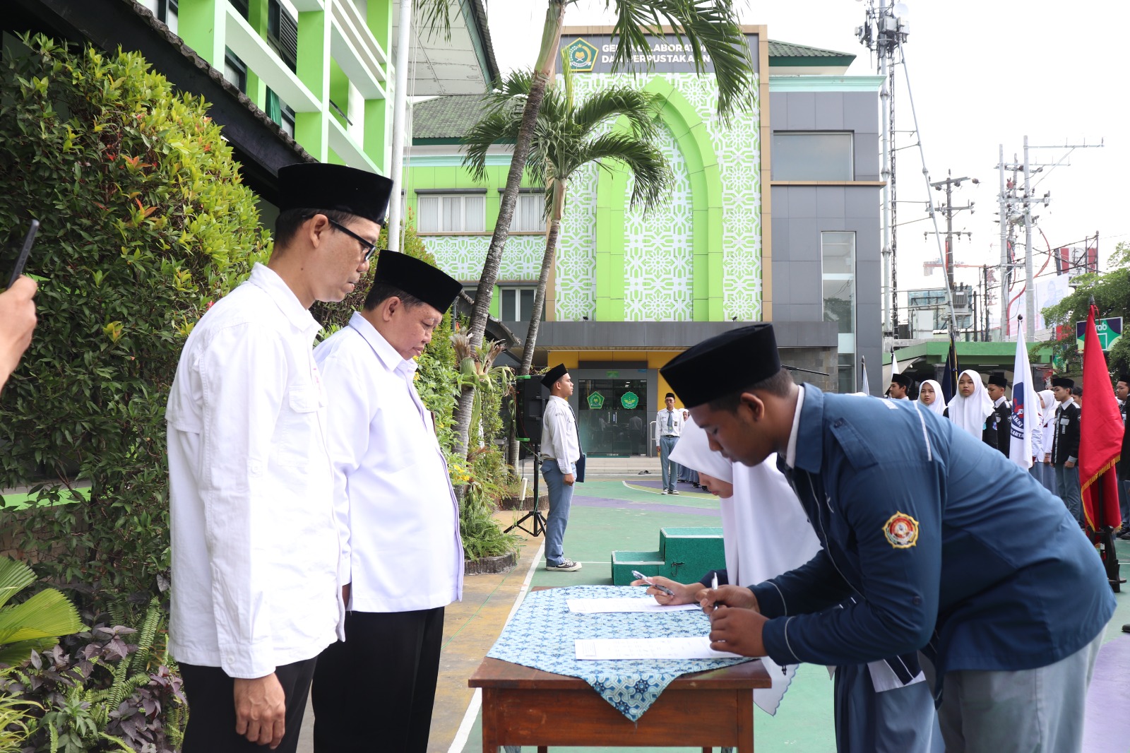 Kepala MAN 1 Yogyakarta Drs. H. Wiranto Prasetyahadi, M.Pd. dan Wakamad Bidang Kesiswaan Soeprastiyono, M.Pd.I., serta seluruh civitas akademika menyaksikan proses Sertijab yang berlangsung khidmat. Penandatanganan berita acara serah terima jabatan dibubuhkan oleh setiap pengurus lama dan baru dari masing-masing bidang keorganisasian.