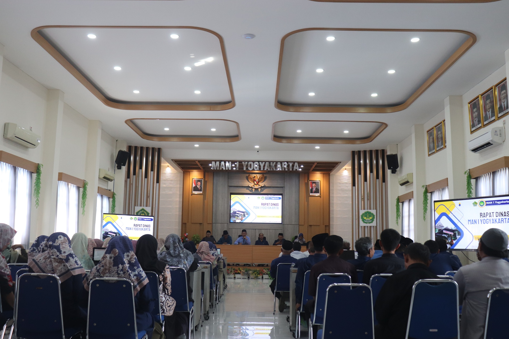 Yogyakarta (MAN 1 Yogya) – MAN 1 Yogyakarta menyelenggarakan rapat dinas Semester 2 Tahun Pelajaran 2025–2026, Jumat (02/01/2026). Acara digelar di aula utama lantai 2 MAN 1 Yogyakarta, mulai pukul 13.30 WIB hingga selesai. Kegiatan ini diikuti oleh seluruh guru dan tenaga kependidikan sebagai momentum awal semester genap untuk menyatukan langkah, memperkuat sinergi, serta mengevaluasi dan menyiapkan program kerja madrasah ke depan.