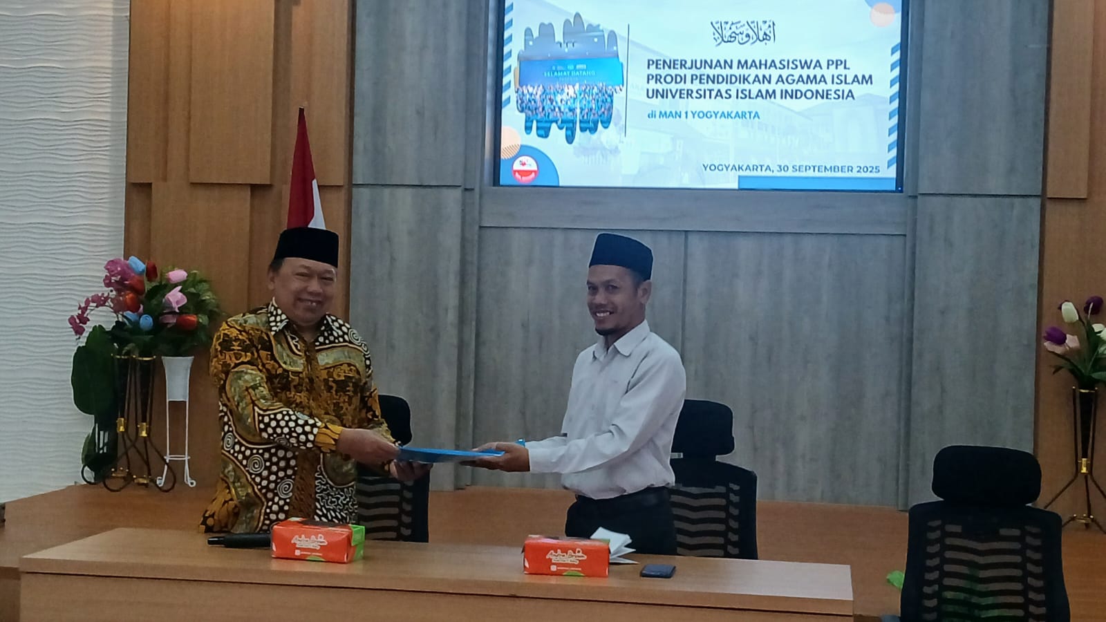 Yogyakarta (MAN 1 Yogya) - Suasana hangat memenuhi aula lantai 2 MAN 1 Yogyakarta pada hari Selasa (30/9/2025), saat berlangsungnya kegiatan penerjunan mahasiswa Praktik Pengalaman Lapangan (PPL) dari Universitas Islam Indonesia (UII). Kegiatan ini menandai dimulainya masa pengabdian para mahasiswa di lingkungan madrasah, sekaligus membuka ruang kolaborasi antara dunia kampus dan pendidikan menengah. Acara dihadiri oleh Wakil Kepala Madrasah bidang Kurikulum, staf kurikulum, guru pamong, Dosen Pembimbing Lapangan (DPL), serta para mahasiswa PPL dari program studi Pendidikan Agama Islam (PAI).