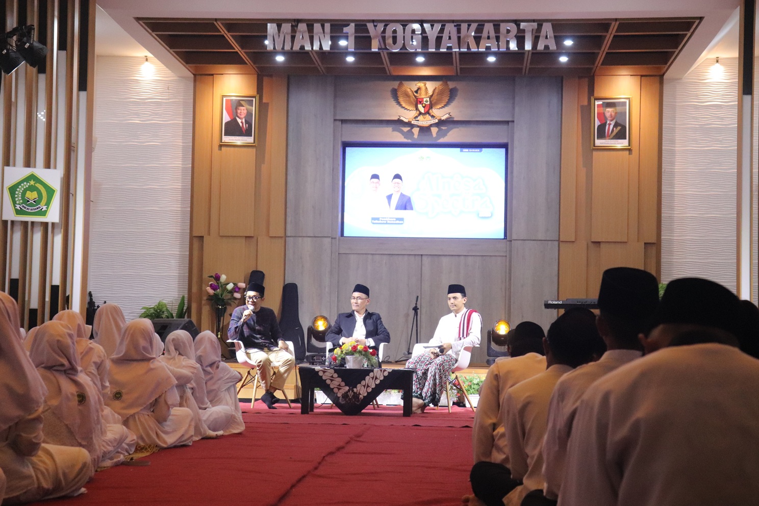 Yogyakarta (MAN 1 Yogya) – MAN 1 Yogyakarta menyelenggarakan Talkshow Ramadan bertema “Bersama Mewujudkan Generasi Unggul dan Berakhlakul Karimah” sebagai bagian dari rangkaian kegiatan Pesantren Ramadan 1447 H, Rabu, (11/03/2026). Kegiatan ini menghadirkan dua narasumber, yaitu Ustaz Tajul Muluk, M.Ag , pengasuh Pondok Pesantren UII sekaligus pegiat kajian keislaman, dan Kepala MAN 1 Yogyakarta, H. Edi Triyanto, S.Ag., S.Pd., M.Pd. Talkshow dipandu oleh Ustadz Arju Shidqol Yaqin, S. Ag., salah satu pengajar di MAN 1 Yogyakarta.